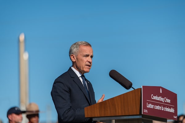 Prime Minister Mark Carney visits an Etobicoke, Ont., RCMP detachment on Thursday.Laura Proctor/The Canadian Press