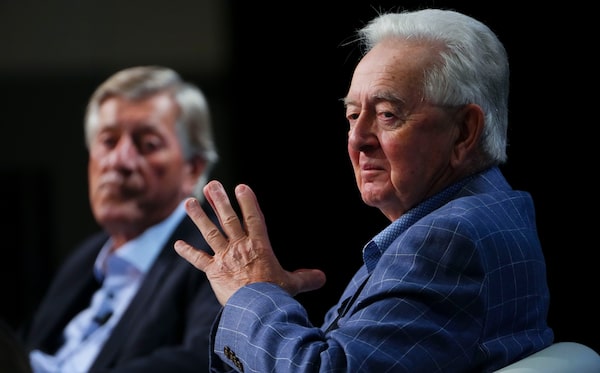 Preston Manning and Mike Harris take part in a panel discussion during the Canada Strong and Free conference in Ottawa on May 6.Sean Kilpatrick/The Canadian Press