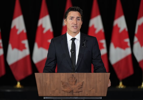 Prime Minister Justin Trudeau delivers a statement on the passing of Queen Elizabeth II, in Vancouver, on Sept. 8.DARRYL DYCK/The Canadian Press