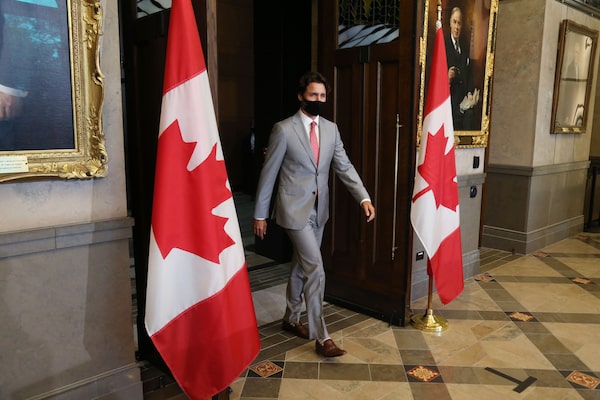 Prime Minister Justin Trudeau arrives for a news conference on Parliament Hill, Aug. 18, 2020 in Ottawa.DAVE CHAN/AFP/Getty Images