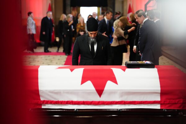 Simon was followed by Prime Minister Justin Trudeau, who walked in alone before greeting family members and bowing his head at the casket.