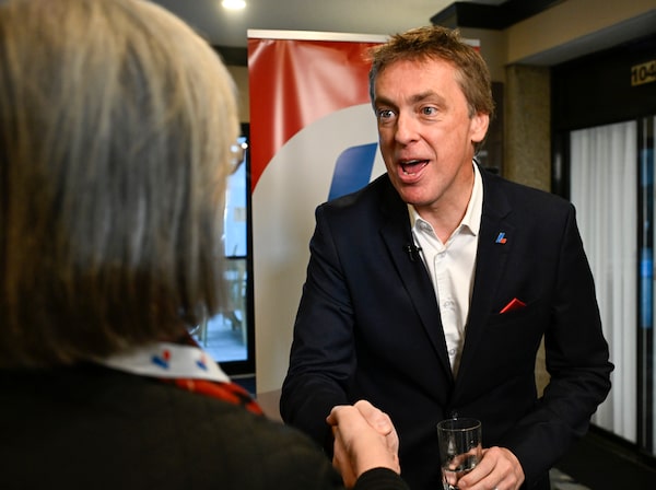 Quebec Liberal Party interim leader Marc Tanguay is greeted by a delegate as he walks in the Quebec Liberal general council meeting on Oct. 14. in Drummondville, Que.Jacques Boissinot/The Canadian Press