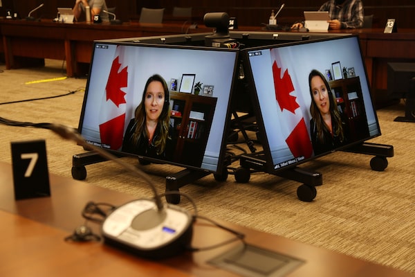 Katie Telford, Chief of Staff to Canada's Prime Minister Justin Trudeau testifies via video conference during a House of Commons Standing Committee on Finance July 30, 2020 in Ottawa, Canada.DAVE CHAN/AFP/Getty Images