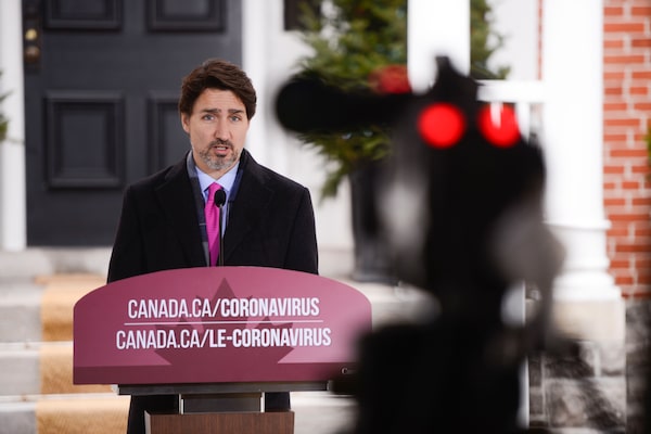 Prime Minister Justin Trudeau addresses Canadians on the COVID-19 pandemic from Rideau Cottage in Ottawa on April 8, 2020.Sean Kilpatrick/The Canadian Press