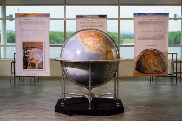 The new globe commissioned by the Royal Canadian Geographic Society on display before the unveiling at the headquarter building in Ottawa on Thursday.Photography by James Park/The Globe and Mail