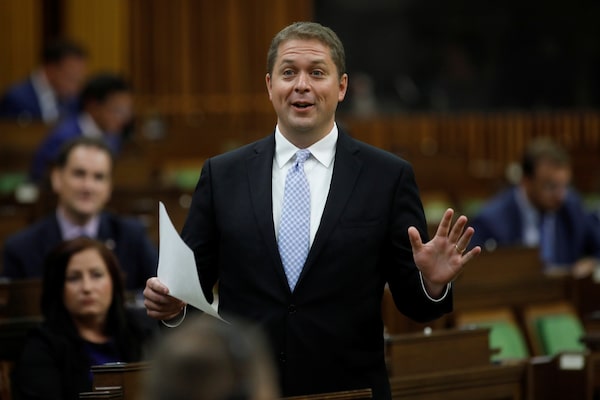Conservative Leader Andrew Scheer speaks in the House of Commons, in Ottawa, on Aug. 12, 2020.BLAIR GABLE/Reuters