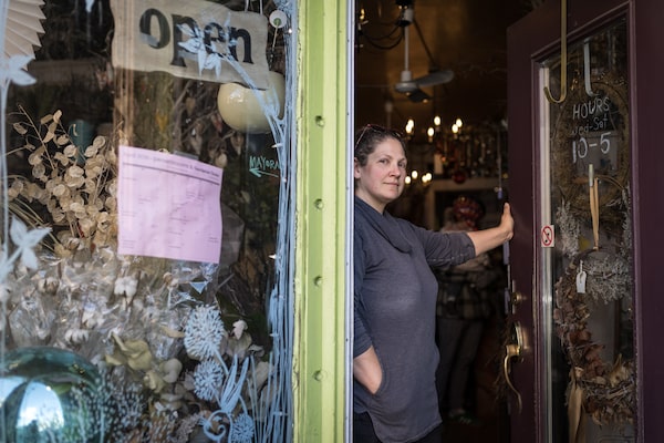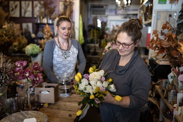 Marika Styba, owner of Peaseblossoms Flowers in Calgary, says her walk-in customer traffic has decreased by at least 50 per cent over the past four years.Photography by Amir Salehi/The Globe and Mail
