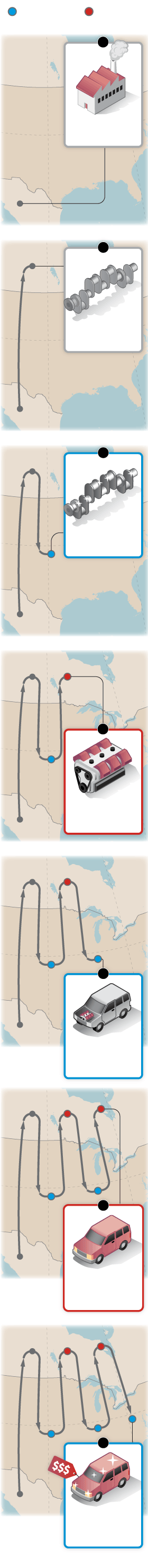 Many kinds of Canada-U.S. trade are more complicated than the wheat example we gave earlier. The countries are long used to sharing labour on assembling complex machinery. Consider a crankshaft, a vital part of the engine that powers a car or truck: It could involve six border crossings, with a new layer of taxes each time, which could trickle down to consumers who buy the finished vehicle.