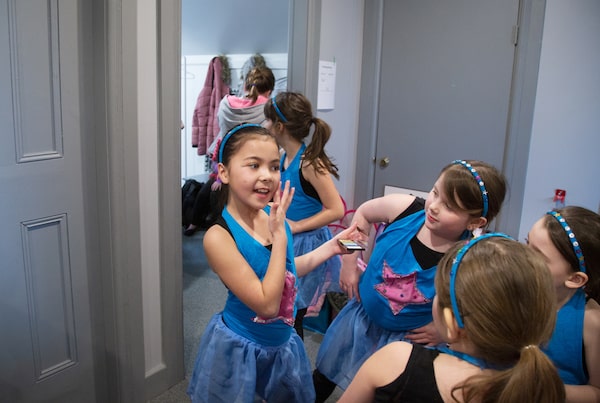 Dancer Maya Blackburn applies makeup as dancers crowd around prior to the production of The Power of Love at Kings Theatre in Annapolis Royal, N.S., on March 2, 2025.Meagan Hancock/The Globe and Mail