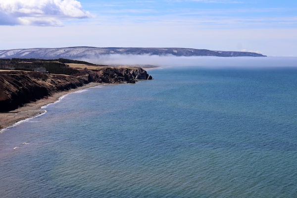 They pulled over to drink their coffees and Mr. MacDonald, who never goes far without his camera, snapped a photo of the rugged shoreline blanketed in fog.