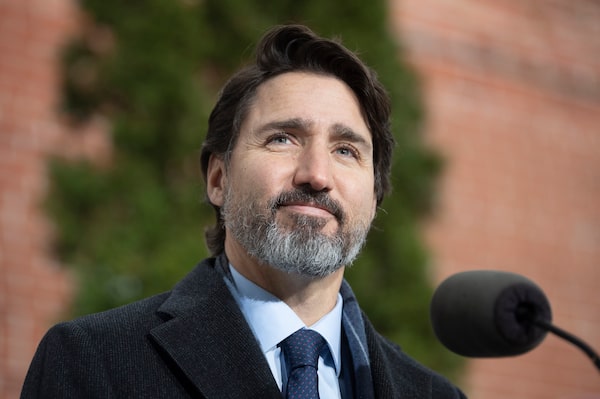Prime Minister Justin Trudeau during a bi-weekly news conference outside Rideau cottage in Ottawa, Nov. 27, 2020.Adrian Wyld/The Canadian Press