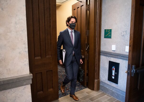 Prime Minister Justin Trudeau arrives in the foyer of the House of Commons on Parliament Hill for a meeting of the Special Committee on the COVID-19 Pandemic in Ottawa, on May 27, 2020.Justin Tang/The Canadian Press