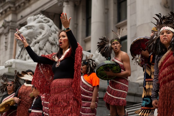 The Coastal Wolf Pack dancers perform for the crowd on Canada's first National Day for Truth and Reconciliation at the former Vancouver Art Gallery North Plaza in Vancouver on Sept. 30.AMY ROMER/Reuters