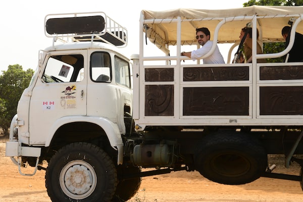 Prime Minister Justin Trudeau rides in a unimog as he visits with farmers in Keri, Senegal, on Feb. 13, 2020.Sean Kilpatrick/The Canadian Press