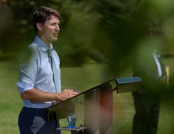 Prime Minister Justin Trudeau speaks about a watchdog's report on SNC-Lavalin, in Niagara-on-the-Lake, Ont., on Aug. 14, 2019.Andrej Ivanov/Reuters