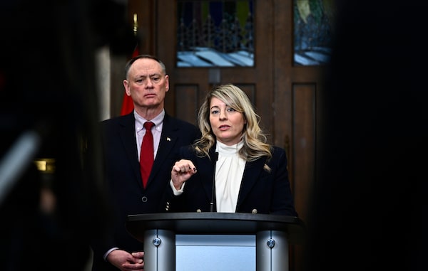 Minister of Foreign Affairs Melanie Joly and Minister of Public Safety David McGuinty participate in a media availability in Ottawa on Monday.Justin Tang/The Canadian Press