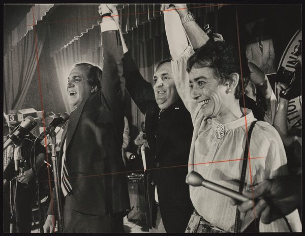 Ed Broadbent, left, and wife Lucille, right, are flush with victory after the NDP leader's personal re-election in Oshawa on May 21, 1979.ERIK CHRISTENSEN/The Globe and Mail