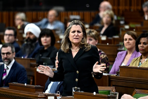 Deputy Prime Minister and Minister of Finance Chrystia Freeland rises during Question Period in the House of Commons on Parliament Hill in Ottawa on June 10.Justin Tang/The Canadian Press