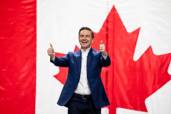 Conservative Party Leader Pierre Poilievre gestures after speaking during a federal election campaign stop in Montréal-Est, Que., on April 18.Christopher Katsarov/The Canadian Press
