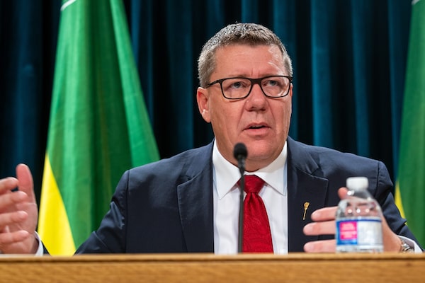 Saskatchewan Premier Scott Moe speaks during a press conference in Regina, on Oct. 25, 2023.Heywood Yu/The Canadian Press