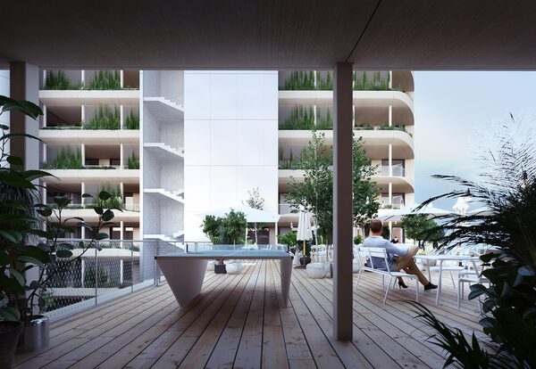 The design further envisions a range of other energy efficiency elements, such as a sewer heat recovery, a geo-exchange system and radiant heating in the floor – a feature generally considered to be a luxury item in North America, but which is far more common in European multi-unit residential buildings, where the notion of thermal comfort is tightly tethered to a building’s energy performance.