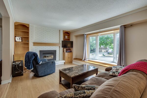 The main floor living room comes with a gas fireplace.Michael St. Jean Realty Inc.