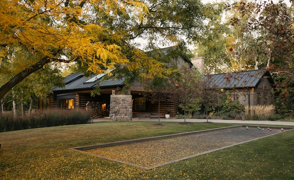 Over time, the couple revamped the outdoor entertaining area with an inground pool and hot tub and stone terraces. There’s also a bocce court.