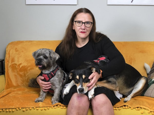 Claudia Baha with her dogs Rylie and Murphy. Ontario Divisional Court has upheld a ruling that awarded Ms. Baha $15,000 after her condo board tried to enforce its one-dog-only bylaw.Alicia Wynter/The Globe and Mail
