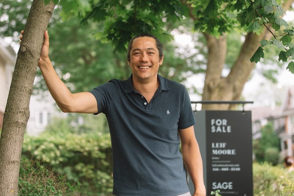 Leif Moore, an agent with Sage Real Estate, in front of one of his listings in the Bloor West neighbourhood in Toronto, on June 21, 2021.Jenna Marie Wakani/the globe and mail