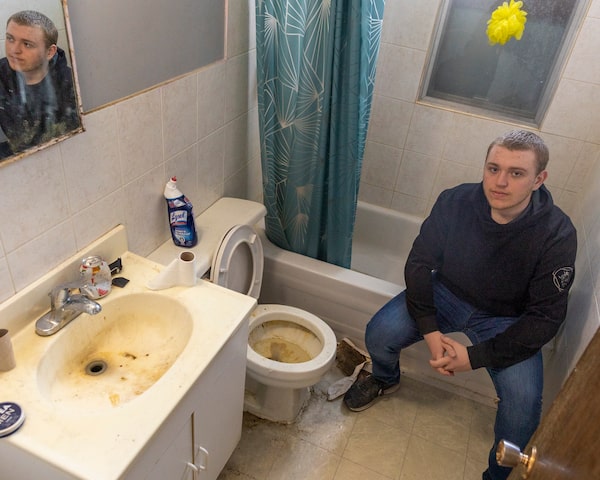 Max Martin in an unusable, mould-filled bathroom in the home he rents with four friends.The Globe and Mail
