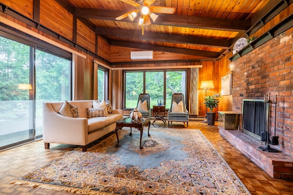 In the 1980s, it was expanded to offer a total of 3,019 square feet of living space, including a third entertaining area with a fireplace on the main floor.