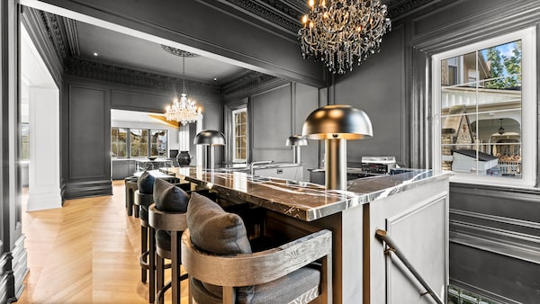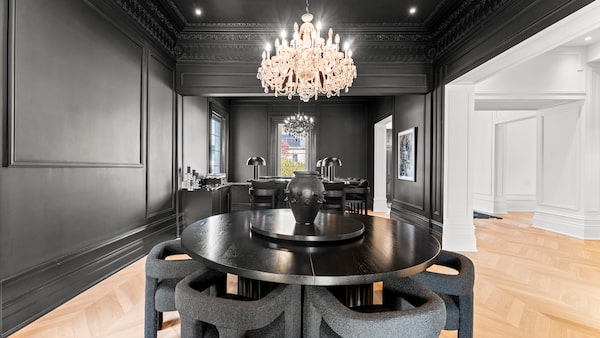 “I hate colour; I only wear black,” said Ms. Shuster, a fashion consultant who has worked with brands such as Michael Kors and is currently with Canadian outerwear company Nobis. She was not afraid to paint the ceilings or ornate plasterwork black in the bar and dining room. Dark colours on ceilings or detail work can make some rooms feel small, but not this lofty space with this amount of natural light. “It makes me feel very comfortable,” she said.