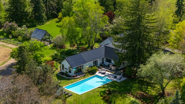 The equestrian amenities included a barn, paddocks and an indoor arena with additional stalls and a viewing lounge.