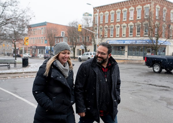 Mario and Sarah Castillo walk along Beckwith Street in Smiths Falls, Ont.Justin Tang/The Globe and Mail