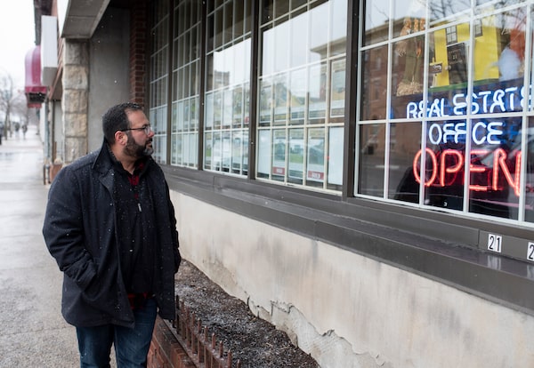 Mario Castillio passes listings on a real estate agent's window on Beckwith Street in Smiths Falls, Ont.Justin Tang/The Globe and Mail