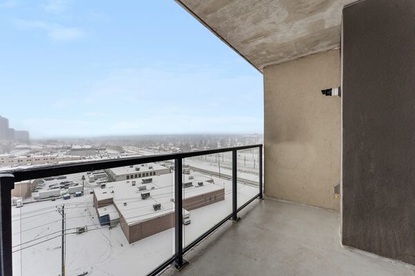 In a 14-year-old building known as London at Heritage Station, this 711-square-foot unit has nine-foot ceilings and south-facing windows in the bedroom and living room, which also opens to a balcony.