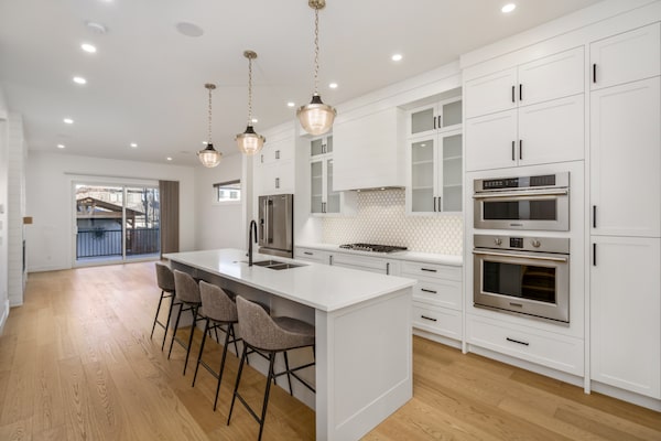 This two-storey house in Calgary has 2,077 square feet of living space with 10-foot ceilings and 941 square feet of space in the finished basement.Photography provided by CIR Realty
