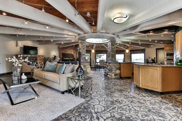 “The main living area was completely round with heated stamped concrete floors and windows all the way around,” Mr. Vanovermeire said. “[Plus] there’s a big home office, family room or guest suite above the garage … which is very unusual for Chestermere.”