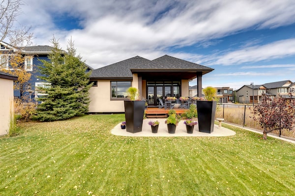 This 1,965-square-foot house on a 49-by 156-foot lot near Canada Olympic Park was a builder’s own home with many upgrades. It has ten-foot ceilings and two fireplaces, as well as heated floors in three bathrooms, the 1,559-square-foot basement and the double garage.