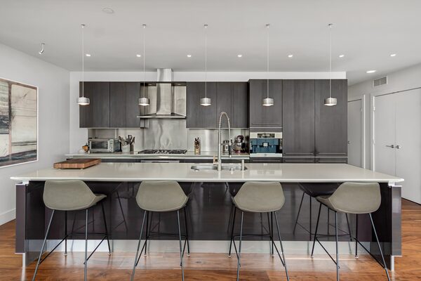 The 2,158-square-foot unit has 11-foot ceilings, as well as full-height windows everywhere from the open living and dining areas to the largest of the three bathrooms.Re/Max Realty Professionals
