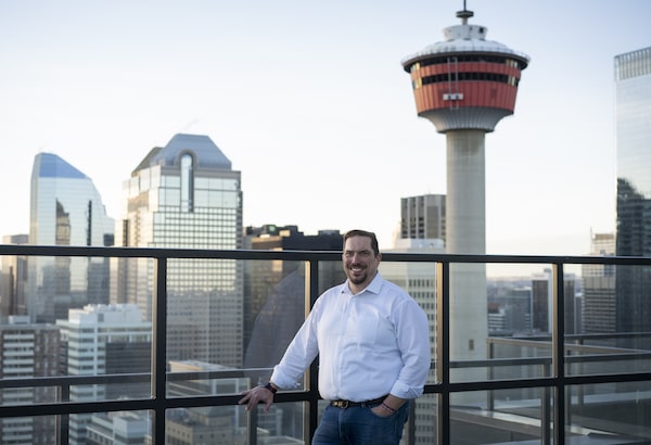 David Keam on the roof-top deck of the building where he is renting an apartment in Calgary, on Feb. 11, 2022.TODD KOROL/The Globe and Mail