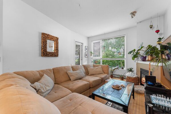 The unit has an open living room with a gas fireplace.eXp Realty