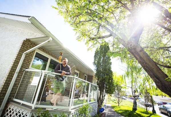 Adam Noble-Johnson with his new house he and his wife bought in Calgary on May 31, 2020.Todd Korol/The Globe and Mail