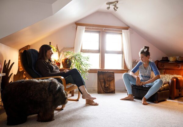 Sarah Wilkinson and her daughter Rosemary chat in the loft of their Edmonton home.JASON FRANSON