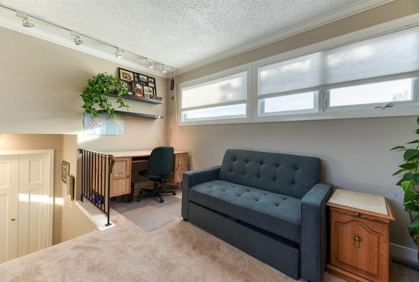 Directly below is a guest room and second full bathroom.