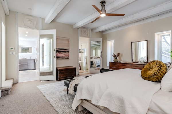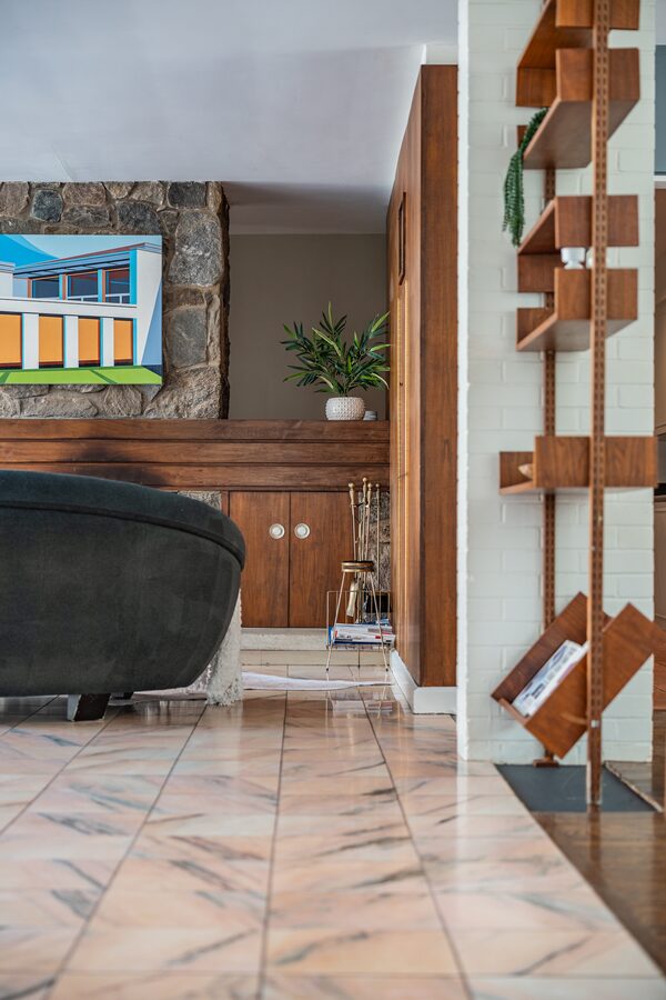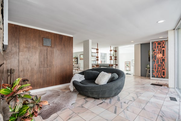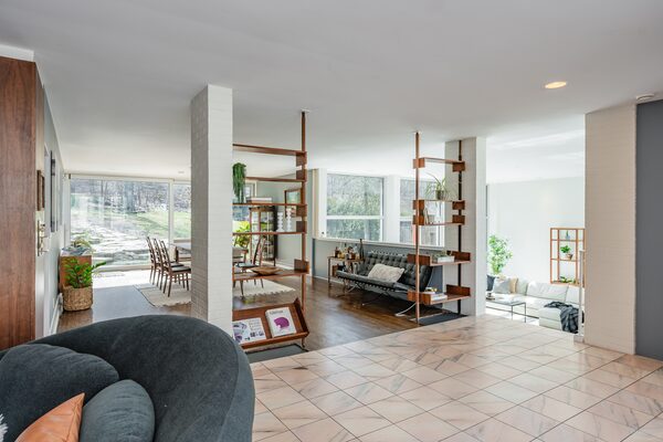 Mr. Markson’s style was in full flight on Goldblatt II. Some of the exterior signatures of the home were erased over the decades by subsequent owners, even if the form and function and the interior flow remains.