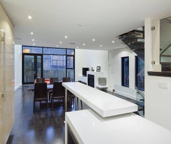 To achieve the sleek design in the townhouse, the architect worked to keep the space open and uncluttered.photos by tom Arban