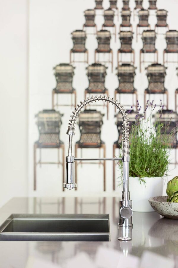 My preference is to always try and conceal any dishwasher or refrigerator by using built-in models, but a decent-sized built-in fridge, at counter depth, starts at $6,000. By comparison, standard depth, stainless steel options are a more reasonable $2,500 and under. So in this case, we selected a sleek conventional model and tucked it into the far corner.Barry Calhoun