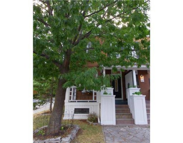 This three-bedroom semi-detached home is located in Toronto's Danforth neighbourhood. It was recently renovated to include bamboo floors and the wiring was replaced. The large backyard is completely fenced and has lots of shade.
