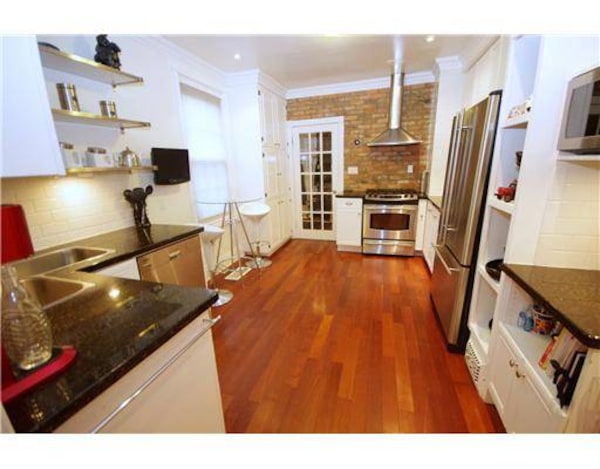 This three bedroom, three bathroom corner lot in downtown Ottawa was recently renovated. The main floor features an open-concept kitchen with stainless steel appliances and granite counter tops.
